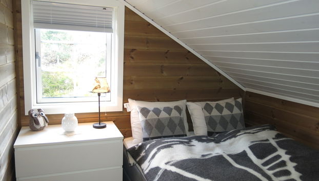 "Bortebu", 6-Zimmer-Haus 120 m2 auf 2 Stockwerken. Objekt geeignet für 6 Erwachsene + 2 Kinder. Gemütlich eingerichtet: Wohnzimmer mit Schwedenofen. Ausgang zur Terrasse. 1 Zimmer mit 2 x 2 Etagenbetten (75 cm, Länge 200 cm).