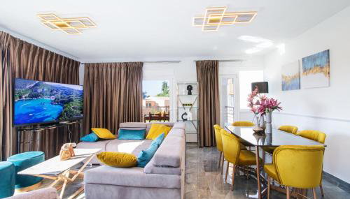 Diese Ferienwohnung mit Klimaanlage besteht aus 3 Schlafzimmern, einem Wohnzimmer, einer voll ausgestatteten Küche mit einem Kühlschrank und einer Kaffeemaschine sowie 2 Badezimmern mit einer Dusche und kostenlosen Pflegeprodukten. In dieser Ferienwohnung werden Handtücher und Bettwäsche angeboten.