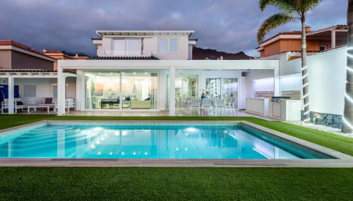 Gelegen in Adeje, bietet die Unterkunft VILLA VALENTINA OCEAN VIEW HEATED Pool eine Terrasse mit Stadtblick und Meerblick sowie einen ganzjährig geöffneten Außenpool, einen Fitnessraum und einen Whirlpool.