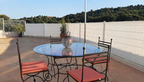Die Unterkunft Villa_Culomba ALATA -T2 4 couchages, die über einen Garten, eine Terrasse und Grillmöglichkeiten verfügt, bietet Übernachtungsmöglichkeiten in Alata mit kostenlosem WLAN und Bergblick.