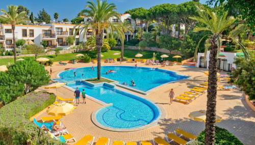 Der freundliche Apartmentkomplex befindet sich inmitten einer gepflegten Grünanlage direkt auf den Klippen mit wunderschönem Blick auf die Küste. Den Strand erreicht man über einen Pfad und Treppen nach ca. 300 Metern. Einkaufsmöglichkeiten, Bars und Restaurants sind in ca. 1,5 Kilometern vorhanden. Zur Altstadt Albufeiras sind es ca. 6 Kilometer.