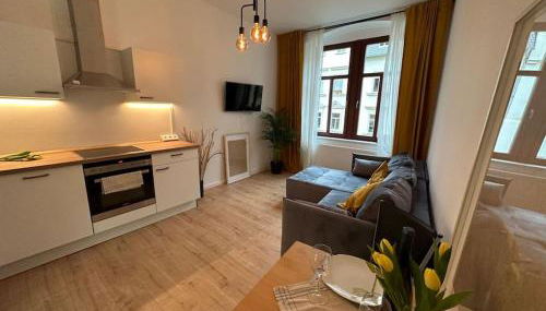 Diese Ferienwohnung bietet einen Balkon, 1 Schlafzimmer, ein Wohnzimmer und eine gut ausgestattete Küche mit einem Kühlschrank und einem Geschirrspüler. In dieser Ferienwohnung werden Handtücher und Bettwäsche angeboten.