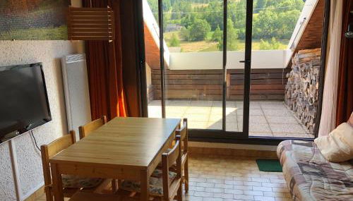 Gelegen in Ancelle, in der Region Provence-Alpes-Côte d’Azur, bietet die Unterkunft Duplex 6 à 8 couchages calme avec solarium plein Sud eine Veranda / Patio.