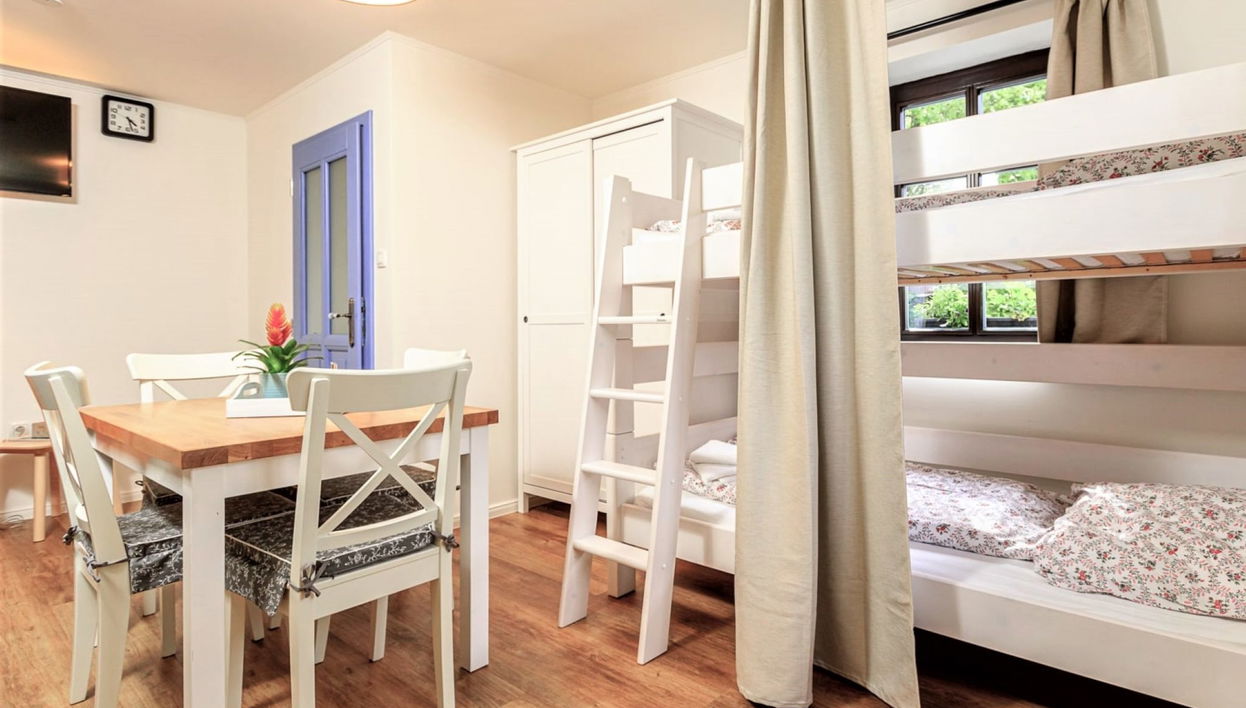 "Arnoltice 11 Deluxe", 2-Zimmer-Wohnung im Erdgeschoss. Eingang. Wohn-/Schlafzimmer mit 1 x 2 Etagenbetten, Sat-TV. 1 Zimmer mit 1 Doppelbett.