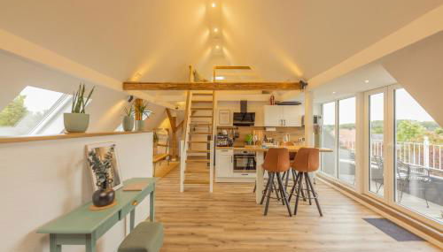 Die Unterkunft Loft mit Burgblick verfügt über Stadtblick und Übernachtungsmöglichkeiten mit einem Balkon und einem Wasserkocher, ungefähr 40 km von Theater an der Wilhelmshöhe entfernt.
