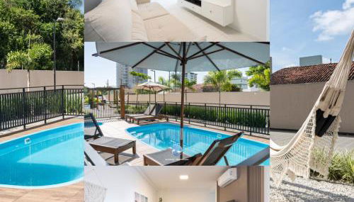Die Unterkunft Apartamentos completos a 15min BETO CARREIRO com WI-FI CHURRASQUEIRA em CONDOMÍNIO com PISCINA portaria 24h Ideal para família ist in Balneário Piçarras, 200 m von Strand Praia das Palmeiras und 2,3 km von Univali Oceanographic Museum entfernt gelegen und bietet Übernachtungsmöglichkeiten mit kostenlosem WLAN einer Klimaanlage und Zugang zu einem Garten mit einem Außenpool.