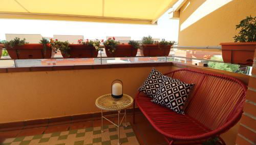 Diese Ferienwohnung mit Klimaanlage besteht aus 2 Schlafzimmern, einem Wohnzimmer, einer voll ausgestatteten Küche mit einem Kühlschrank und einer Kaffeemaschine sowie 2 Badezimmern mit einem Bidet und einer Dusche. In dieser Ferienwohnung werden Handtücher und Bettwäsche angeboten.