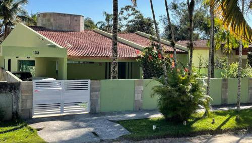 Die Unterkunft Casa a 50 metros da Praia da Riviera no Jardim São Lourenço - Casa com Wi-Fi besticht durch Gartenblick und einen Balkon, ungefähr 12 km von Parque Estadual Restinga de Bertioga entfernt. 100 m von Strand Praia Riviera de Sao Lourenco entfernt gelegen bietet die Unterkunft einen Garten und einen kostenlosen Privatparkplatz.