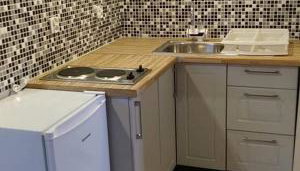 Dieses Ferienhaus ist ausgestattet mit 2 Schlafzimmern, Satelliten Flachbild-TV, einem Essbereich, einer Küchenzeile mit einem Kühlschrank und einem Wohnzimmer.
