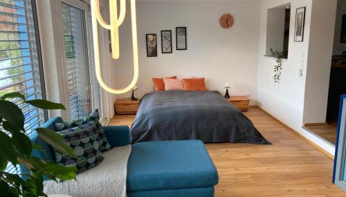 Die Unterkunft Außergewöhnliches Apartment in bester Lage, die über eine Terrasse verfügt, bietet Übernachtungsmöglichkeiten in Biberach an der Riß mit kostenlosem WLAN und Gartenblick.
