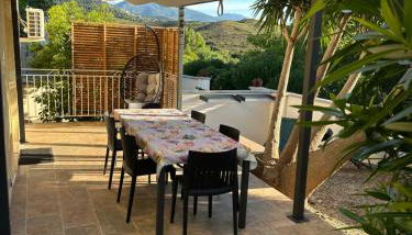 Die Unterkunft Appartement deux chambres spacieux avec jardin et entièrement privatif dans lotissement très calme, die über einen Garten, eine Gemeinschaftslounge und eine Terrasse verfügt, bietet Übernachtungsmöglichkeiten in Biguglia mit kostenlosem WLAN und Bergblick. Diese Villa bietet einen kostenlosen Privatparkplatz und eine Gemeinschaftsküche.