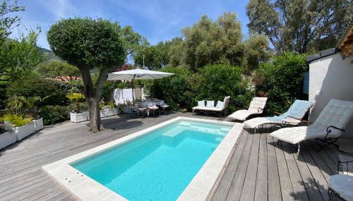 Die Unterkunft La villa Flamingo toute proche de la plage, die über einen saisonalen Außenpool, einen Garten und eine Terrasse verfügt, bietet Übernachtungsmöglichkeiten in Biguglia mit kostenlosem WLAN und Bergblick.