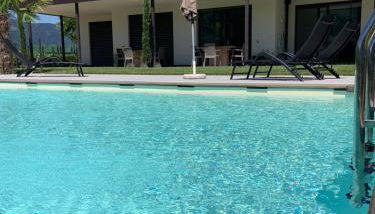 Gäste können im Außenpool schwimmen, im Garten entspannen, oder Skifahren oder Fahrradfahren.