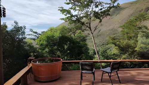 Die Unterkunft Di Vino Chalé Blanc - Serra da Moeda besticht durch Gartenblick und Übernachtungsmöglichkeiten mit einem Balkon und einer Kaffeemaschine, ungefähr 38 km von Museum Inhotim entfernt.