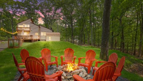 Gelegen in Bushkill bietet die Unterkunft Secluded Cabin, Jacuzzi, Pool Table, King Bed & Fire Pit Übernachtungsmöglichkeiten mit einem eigenen Pool, einem Balkon und Gartenblick.