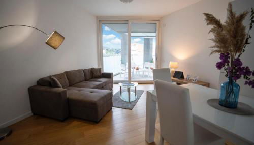 Diese Ferienwohnung mit einer Terrasse und Stadtblick hat 1 Schlafzimmer, ein Wohnzimmer, einen TV, eine gut ausgestattete Küche mit einem Kühlschrank und einem Geschirrspüler sowie 1 Badezimmer mit einem Bidet. In dieser Ferienwohnung werden Handtücher und Bettwäsche zur Verfügung gestellt.