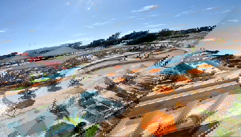 4 Außenpools sorgen für Entspannung; außerdem gehört zu den Freizeiteinrichtungen Folgendes: Wasserrutsche und Dampfbad.