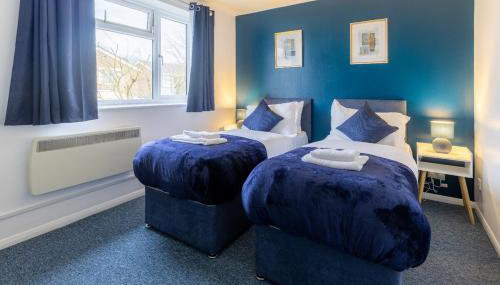 Diese Ferienwohnung verfügt über eine Spielekonsole, hat eine Küche mit einem Kühlschrank, einem Ofen und einer Mikrowelle, ein Wohnzimmer mit einem Sitzbereich und einem Essbereich, 2 Schlafzimmer und 1 Badezimmer mit einer Dusche und einer Badewanne. In dieser Ferienwohnung werden Handtücher und Bettwäsche angeboten.