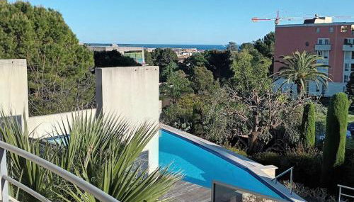Gelegen in Cannes, bietet die Unterkunft T3 vue mer, 2 chambres, piscine, terrasse, parking public gratuit à 150m Übernachtungsmöglichkeiten mit Poolblick und einem eigenen Pool.