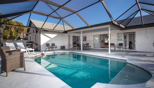 Die Unterkunft The Annabelle-- Bright 4 Bedroom Home, Heated Pool, die in Cape Coral gelegen ist – weniger als 48 km von Fishermen's Village und 27 km von Sanibel Chamber of Commerce entfernt – besticht durch Übernachtungsmöglichkeiten mit kostenlosem WLAN, einer Klimaanlage und einem Außenpool. Dieses Ferienhaus bietet einen eigenen Pool, einen Garten und einen kostenlosen Privatparkplatz.
