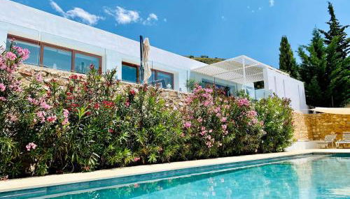 Diese Villa mit einer Terrasse und Meerblick bietet 3 Schlafzimmer, ein Wohnzimmer, einen Flachbild-TV, eine gut ausgestattete Küche mit einem Kühlschrank und einem Geschirrspüler sowie 3 Badezimmer mit einem Bidet. In dieser Villa werden Handtücher und Bettwäsche angeboten.