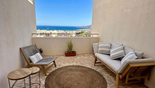 Diese Ferienwohnung mit Klimaanlage mit direktem Zugang zu einer Terrasse mit Meerblick besteht aus 2 Schlafzimmern und einer voll ausgestatteten Küche. In dieser Ferienwohnung werden Handtücher und Bettwäsche angeboten.