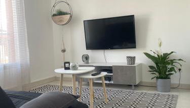 Diese Ferienwohnung mit 1 Schlafzimmer bietet den Gästen Flachbild-TV, eine Klimaanlage und ein Wohnzimmer. Die Unterkunft ist ausgestattet mit einer Küche.