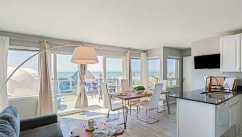 Dieses Ferienhaus mit einer Terrasse und Meerblick hat 4 Schlafzimmer, ein Wohnzimmer, einen TV, eine gut ausgestattete Küche mit einem Kühlschrank und einem Geschirrspüler sowie 4 Badezimmer mit einer Dusche. In diesem Ferienhaus werden Handtücher und Bettwäsche angeboten.