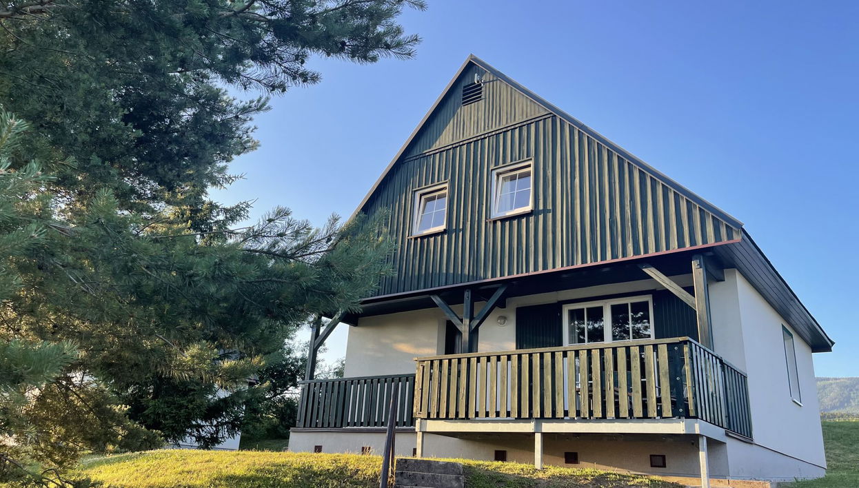 Čistá v Krkonoších 2 km von Černý Důl: Kinderfreundliches, schönes, komfortables Feriendorf "Holiday Hill 60", 500 m.ü.M., umgeben von Bäumen und Wiesen. 43 Häuser im Ferienresort. Am Ortsrand, alleinstehende, ruhige, sonnige Lage, 1.5 km vom See, 3 km vom Skigebiet, im Grünen. Zur Mitbenutzung: Grundstück 6 ha, Wiese, Schwimmbad beheizt (9 x 4 m, 120 cm tief, saisonale Verfügbarkeit: 15.Mai. - 30.Sep. Öffnungszeiten Schwimmbad: 09:00-20:00). Dusche/WC im Poolbereich, Tischtennis, Kinderspielplatz (Schaukel, Sandkasten). Zur Alleinbenutzung: Terrasse (14 m2). In der Anlage: Empfang, Einstellraum für Fahrräder, Skiraum, Zentralheizung. Parkplatz (für 2 Autos) beim Haus. Einkaufsgeschäft 2.5 km, Lebensmittelgeschäft 2.5 km, Supermarkt 7.5 km, Restaurant 1.6 km, Biergarten 400 m, Bushaltestelle "Černý Důl, Čistá-pošta" 400 m, Grasstrand 1.5 km (klein), Hallenbad 19 km. Golfplatz (18 Loch) 14 km, Tennis 2.5 km, Sportzentrum 2.5 km, Wanderwege ab Haus, Radweg 100 m, Skilift 3 km, Sessellift 3 km, Skipisten 3 km, Skischule 3 km, Kinderskischule 3 km, Schlittelbahn 7 km, Langlaufloipe 100 m. Nahe gelegene Sehenswürdigkeiten: Janské Lázně Spa 9 km, Vrchlabí 10 km, Aquapark Trutnov 25 km, Zoo Safari Dvůr Králové 29 km, Bozkovské jeskyně 37 km, Adršpašské skály 44 km. Bekannte Skigebiete sind gut erreichbar: Černý Důl 3 km, Herlíkovice 15 km, Pec pod Sněžkou 22 km. Bekannte Seen in der Umgebung sind gut erreichbar: Čistá 1.5 km, Vrchlabí 9 km. Wandergebiete: Sněžka 25 km.