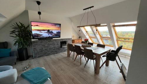 Die Unterkunft 105 QM neues klimatisiertes Appartment für Familien Privater Parkplatz mit einem Garten und einer Terrasse ist gelegen in Chemnitz, 2 km von Karl-Marx-Monument und 2,7 km von Messe Chemnitz sowie 3 km von Opernhaus Chemnitz entfernt. Diese Ferienwohnung bietet einen kostenlosen Privatparkplatz, einen Geldautomaten und kostenloses WLAN.
