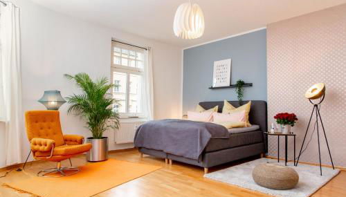 Gelegen in Chemnitz, 2,2 km von Messe Chemnitz entfernt, bietet die Unterkunft Kaßberg Apartment im Retro-Stil / Netflix & WIFI Übernachtungsmöglichkeiten mit einer Gemeinschaftslounge, kostenlosem WLAN und einer Gemeinschaftsküche.