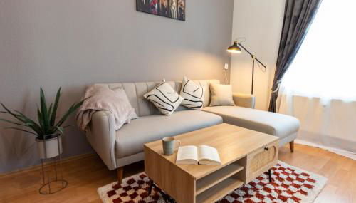Diese Ferienwohnung mit einem Balkon und Stadtblick bietet 2 Schlafzimmer, ein Wohnzimmer, einen Flachbild-TV, eine gut ausgestattete Küche mit einem Kühlschrank und einem Geschirrspüler sowie 1 Badezimmer mit einer Dusche. In dieser Ferienwohnung werden Handtücher und Bettwäsche angeboten.