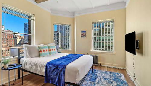 Die Unterkunft Charming Studio Space - SP 1400, die in Chicago gelegen ist, 700 m von Strand Oak Street Beach und 1 km von Chicago Water Tower entfernt, besticht durch kostenloses WLAN und eine Klimaanlage.