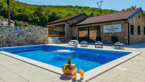 Die Unterkunft Villa on Stone, die über einen saisonalen Außenpool, einen Garten und eine Terrasse verfügt, bietet Übernachtungsmöglichkeiten in Velika Cista mit kostenlosem WLAN und Bergblick.