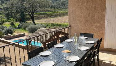 In der Unterkunft Maison calme au cœur des vignes gibt es einen Außenpool ebenso wie eine Terrasse.