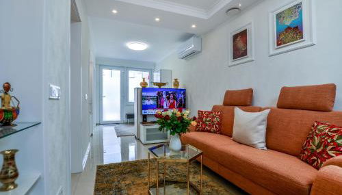 Diese Ferienwohnung mit Klimaanlage besteht aus 2 Schlafzimmern, einem Wohnzimmer, einer voll ausgestatteten Küche mit einem Kühlschrank und einer Kaffeemaschine sowie 1 Badezimmer mit einer Dusche und einem Haartrockner. Es gibt einen Flachbild-TV mit Satellitenkanälen und einen Blu-ray-Player.