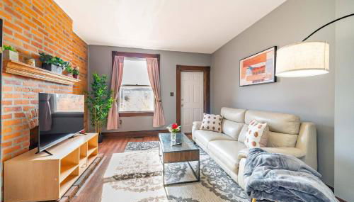 Die Unterkunft Cozy Brick-Short North Condo - (fenced yard) - OSU besticht durch Gartenblick und Übernachtungsmöglichkeiten mit einer Veranda / Patio und einem Wasserkocher, ungefähr 2,6 km von BalletMet entfernt.
