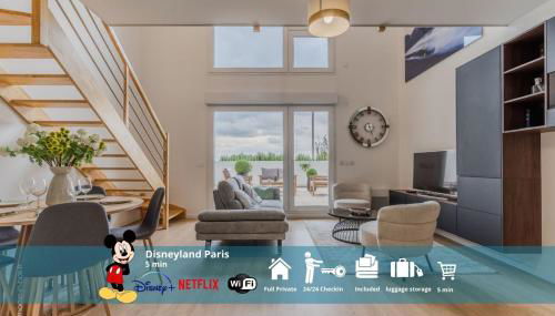 Die Unterkunft Le Hiva Oa, 5 pers, duplex 5min Disneyland Paris mit einer Terrasse ist gelegen in Coupvray, 3,5 km von Disneyland Paris und 6,5 km von Val d'Europe RER Station sowie 41 km von Domaine de Chaalis entfernt.