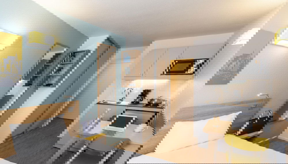 Fühl dich in einem der 111 Zimmer, die Küchen bieten, die über Kühlschränke und Herdplatte verfügen, wie zu Hause. Ein WLAN-Internetzugang (kostenlos) ist ebenso verfügbar wie Digitalempfang. Zur Austattung gehören Telefone ebenso wie Safes und Schreibtische.