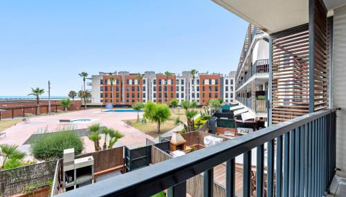 Gelegen in Cubelles, 200 m von Strand Playa de Les Salines und 42 km von Yachthafen Tarragona, bietet die Unterkunft Ática Blue Sea Übernachtungsmöglichkeiten mit kostenlosem WLAN, einer Klimaanlage, einem Außenpool und einem Garten. Diese Unterkunft direkt am Strand bietet Zugang zu einem Balkon.