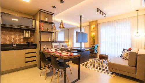 Das Restaurant der Unterkunft Luxuoso Apto Em Frente Ao Shopping Curitiba - Piscina, Academia e Sauna ist auf brasilianische Küche spezialisiert.