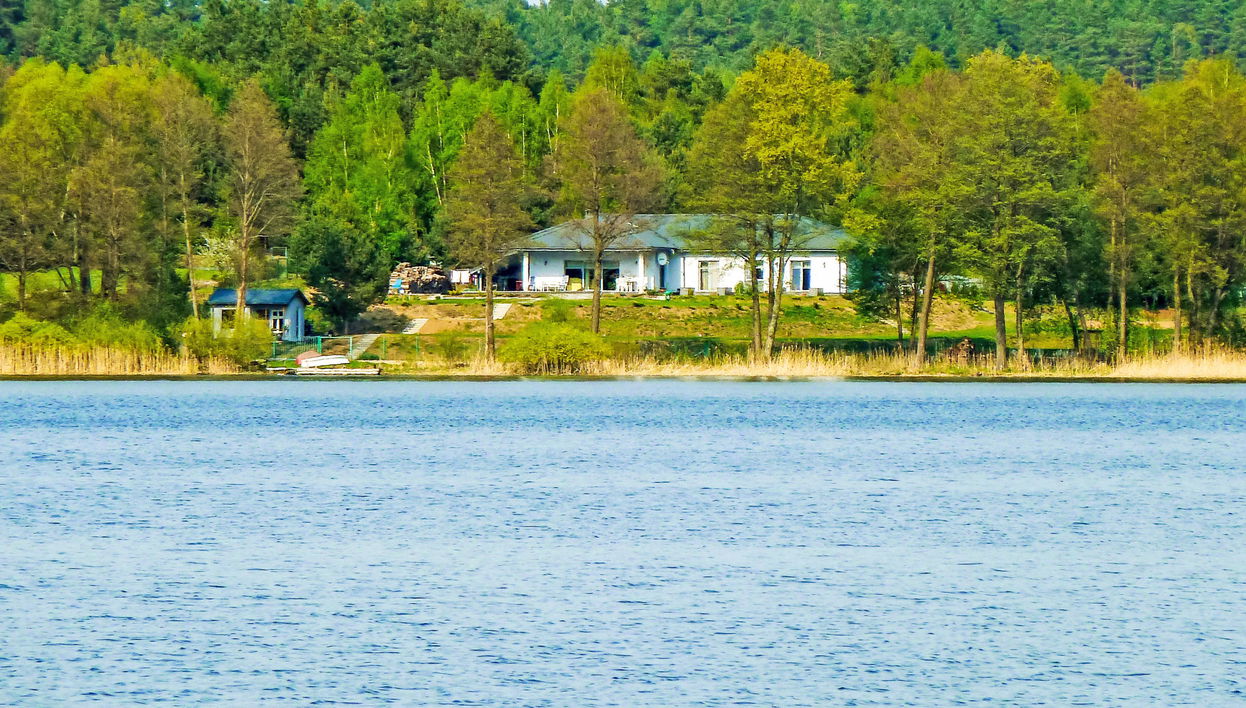 Das Haus liegt am Rande des Naturschutzgebietes "Drawski Park Krajobrazowy", in einer ruhigen Umgebung zwischen den zwei Seen Krosino und Okole Wielkie und am Fluss Drawa. Zweifamilienhaus "Głęboczek 21", Baujahr 2008, umgeben von Bäumen. Ruhige, sonnige, erhöhte Lage, direkt am Waldrand, 10 m vom See, 200 m vom Fluss, im Grünen. Zur Mitbenutzung: Grundstück 3'500 m2 (eingezäunt), Garten Rasen und Bäumen. Laube, Kinderspielplatz (Schaukel). Zur Alleinbenutzung: Terrasse, Grill. Im Hause: Trampolin, Waschmaschine, Wäschetrockner. Zur Verfügung: Kanu, Boot (extra). Zufahrt bis zum Haus (100 m Naturweg). Parkplatz beim Haus auf dem Grundstück. Lebensmittelgeschäft 5 km, Supermarkt 12 km, Restaurant 5 km, Bushaltestelle 5 km, Bahnstation 12 km, Grasstrand "mała przy działce" 10 m. Tennis 5 km, Reitstall 2 km. Bitte beachten: Fahrzeug empfohlen. Angeln (mit Bewilligung). Der Besitzer wohnt im selben Haus. Eigentümer hat einen Hund. Während des Aufenthaltes der Gäste wird der Hund in eine Box geschlossen. Auf dem Grundstück muss man Hunde an der Leine führen. Kanus und Segelboot können vor Ort gemietet werden (extra bezahlt). Zahlreiche Naturpfade in der Nähe des Hauses. TV-deutsche Sender.