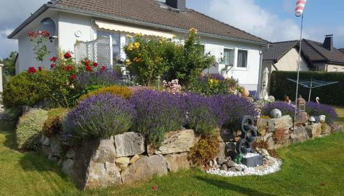 Die Unterkunft Ferienhaus Karla, die über eine Terrasse verfügt, bietet Übernachtungsmöglichkeiten in Schmidtheim mit kostenlosem WLAN und Gartenblick.