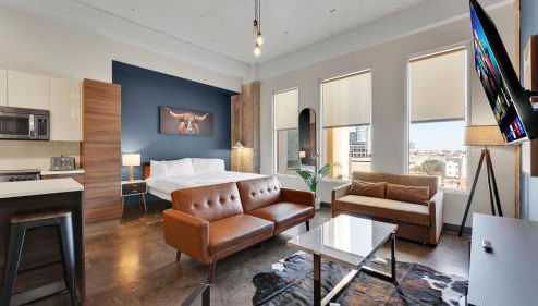 Die Unterkunft Downtown Loft Walk to Convention Center Sleeps 5 bietet Übernachtungsmöglichkeiten in einem Umkreis von 700 m vom Zentrum in Dallas mit kostenlosem WLAN und einer Küche mit einem Kühlschrank, einem Geschirrspüler und einem Ofen.