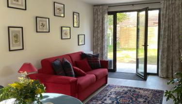 Dieses Ferienhaus mit einer Terrasse und Gartenblick bietet 1 Schlafzimmer, ein Wohnzimmer, einen Flachbild-TV, eine gut ausgestattete Küche mit einem Kühlschrank und einem Geschirrspüler sowie 1 Badezimmer mit einer Dusche. In diesem Ferienhaus werden Handtücher und Bettwäsche zur Verfügung gestellt.
