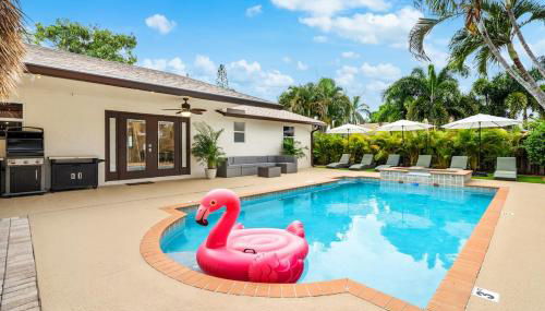 Die Unterkunft Delray Retreat Heated Pool Sauna Cold Plunge Games besticht durch einen Whirlpool und ist in Delray Beach gelegen.