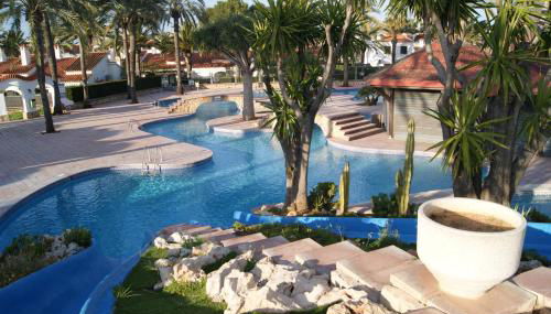Die Unterkunft Apartamento Las Marinas II en Dénia, die über einen Außenpool, einen Garten und eine Terrasse verfügt, bietet Übernachtungsmöglichkeiten in Denia mit kostenlosem WLAN und Bergblick.