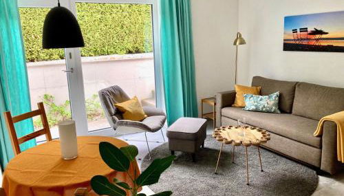 Diese Ferienwohnung mit einer Terrasse und Gartenblick hat 1 Schlafzimmer, ein Wohnzimmer, einen Flachbild-TV, eine gut ausgestattete Küchenzeile mit einem Kühlschrank und einem Ofen sowie 1 Badezimmer mit einer Dusche. In dieser Ferienwohnung werden Handtücher und Bettwäsche angeboten.