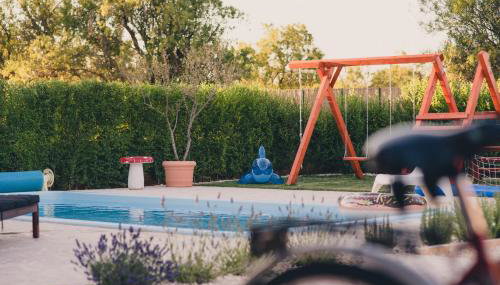 Gäste können in der Unterkunft Cozy country home with heated outdoor pool einen Kinderspielplatz und einen Grill nutzen.
