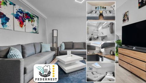 Die Unterkunft DG - Einfach aber sehr komfortabel - Wohnung für bis zu 12 Personen - Gruppen, Messe, Monteure, Studenten - Voll ausgestattet - 3 Smart-TV 55 Zoll Netflix, 1000 Mbit WLAN, voll ausgestattete Küche ist gelegen im Bezirk Ruhrort in Duisburg, 3 km von Rathaus Duisburg, 3,1 km von Salvatorkirche und 3,6 km von Casino Duisburg entfernt. Sie bietet Stadtblick und kostenloses WLAN in der ganzen Unterkunft.